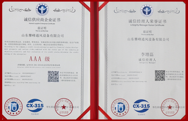• AAA級企業等級證書